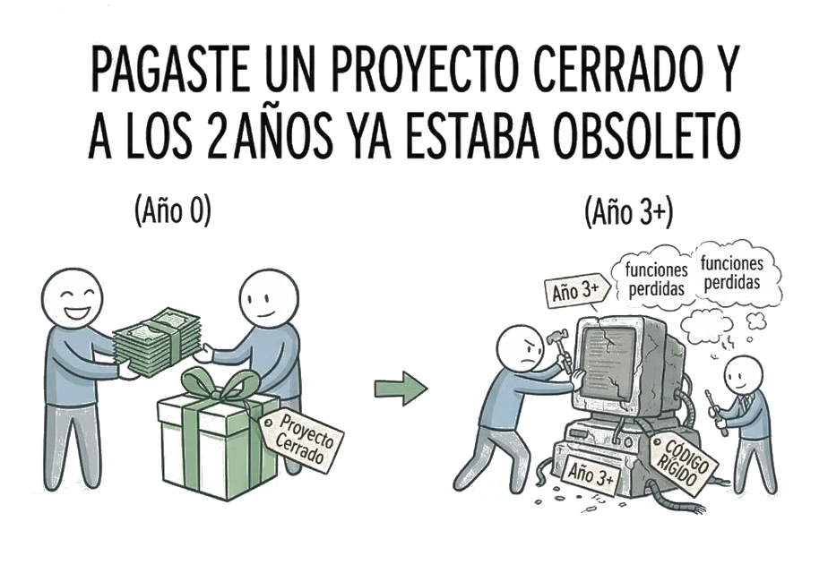 El resultado: software entregado en 6 meses que en 2 años ya está obsoleto, porque nadie ha presupuestado mantenerlo.